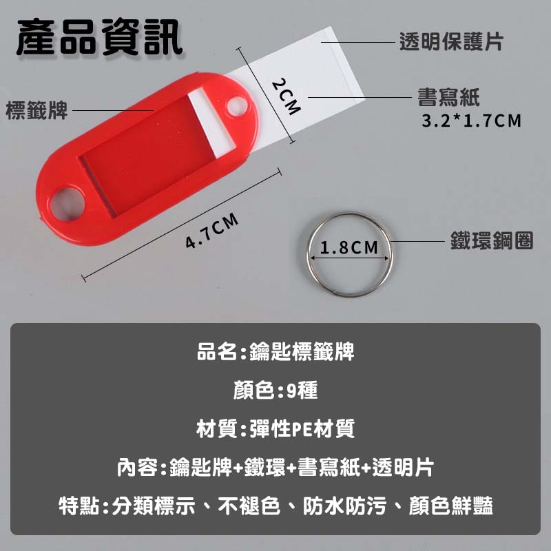 內容:鑰匙牌+鐵環+書寫紙+透明片